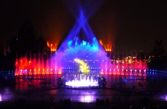 當(dāng)水幕電影拉開帷幕。以夜空為幕,燈光為景,伴隨著或悠揚(yáng)或激越的旋律,噴涌而出的水柱沖向天際, 宏偉壯觀。
